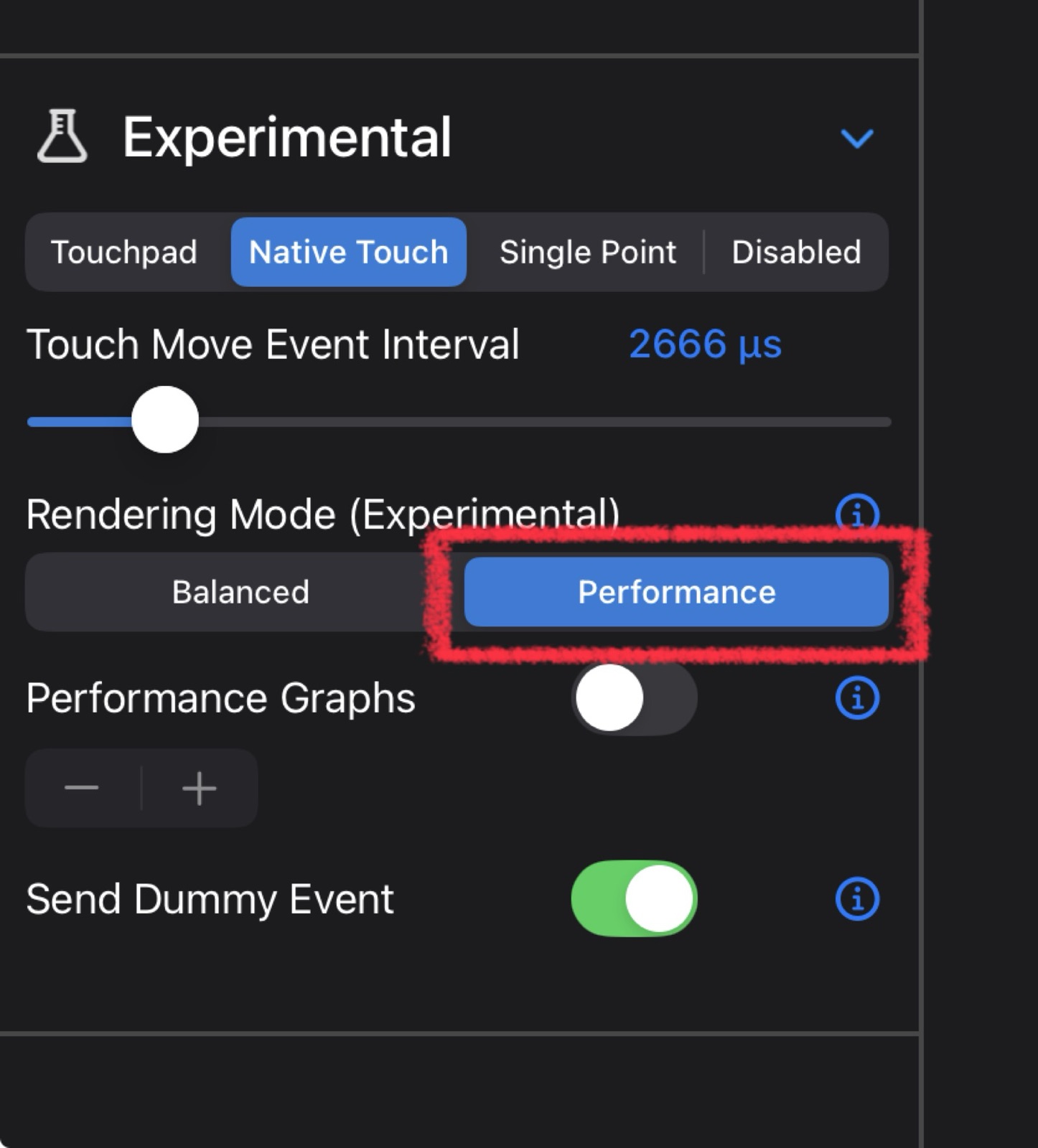 하지만 이 옵션은 응답속도가 중요한 게임이 아니면 항상 켜놓고 쓸 것 같지는 않은데, M4 아이패드 프로 기준으로 미세한 스터터링이 간혹 발생했기 때문입니다. Balanced 모드에서는 별 문제 없었는데 퍼포먼스 모드에서는 스터터링이 눈에 보이는 경우가 있었습니다.